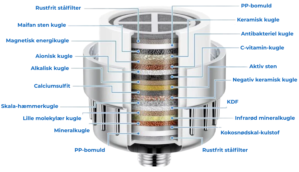 Ved at reducere urenheder i vand fra hanen, mindsker filteret mængden af aflejringer, der kommer i kontakt med dit hår og din hud, så de føles renere, blødere og bedre plejet efter hvert brusebad.